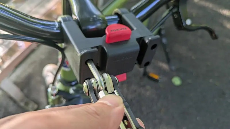 ちなみにオーストリッチのフロントバッグを取り付ける場合バッグ側に専用のパイプをつけないといけないんだけど、ダボスのサポーターがオーストリッチ専用でKLICKfix対応として売っている(ダボス FBS-3 フロントバッグサポーター オーストリッチ専用)からそれで使っている。